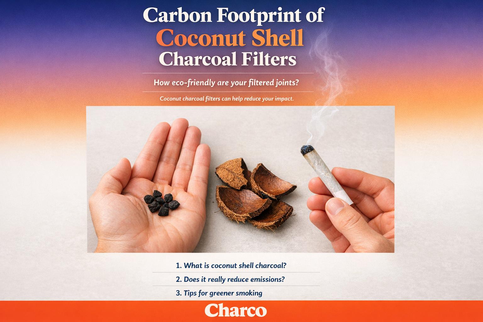 Coconut shell charcoal filters cut lifecycle emissions versus coal, but pyrolysis and pit charring remain the largest sources of carbon impact.